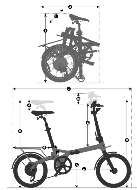 J. Overall length after folding 619mm